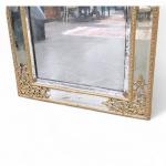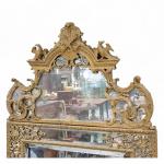MIROIR à parecloses en bois doré, surmonté d'un fronton à décor de feuilles d'acanthe, oiseaux...