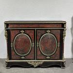 MEUBLE A HAUTEUR D'APPUI en bois noirci et marqueterie Boulle d'écaille rouge et de laiton,...
