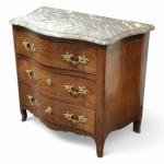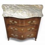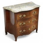 COMMODE DE PORT galbée en acajou, ouvrant à trois tiroirs, dessus de marbre restauré