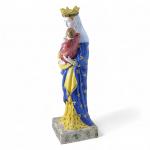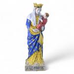 VIERGE A L'ENFANT en faïence à décor émaillé polychrome, annotée...