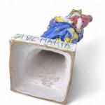 VIERGE A L'ENFANT en faïence à décor émaillé polychrome, annotée "Ave Maria" sur la base H.: 71 cm (légers sauts d'émail)
