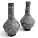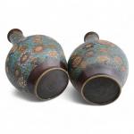 CHINE Paire de vases de forme bouteille en bronze cloisonné et émaux polychromes à décor de fleurs H.: 33.5 cm