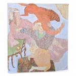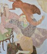 Ahmed HAJERI (né en 1948) Le regard Huile sur toile marouflée sur panneau de mousse, signée, titrée et datée 87 au revers 123 x 108 cm