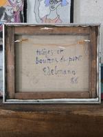 EDELMANN (XXème) Tulipes et boutons de porte Huile sur toile signée et datée 86, titrée et contresignée au revers 33 x 40 cm