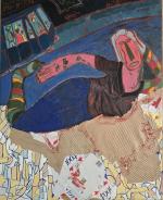 Geneviève ROUBAUD (1946-2024) Attachée d'emballage Acrylique et collage sur toile, signée, titrée et datée au revers 101 x 82 cm