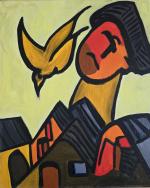 Geneviève ROUBAUD (1946-2024) L'architecte Acrylique sur toile signée en bas à droite, contresignée et titrée au revers 60 x 50 cm