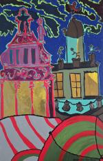 Geneviève ROUBAUD (1946-2024) Bras de nuit à la foire de Bruxelles Acrylique sur toile signée en bas à droite, contresignée, titrée et datée 1993 au revers 92 x 60 cm