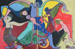 Geneviève ROUBAUD (1946-2024) La ferme de Nat Diptyque acrylique sur toile Chaque toile : 80 x 60 cm