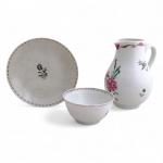 CHINE Compagnie des Indes Pichet, coupelle et petit bol en porcelaine XVIIIème H. max.: 13.5 cm (fêles, égrenures)