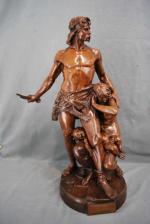 Emile André BOISSEAU (1842-1923) La Défense du foyer Bronze signé patiné, cachet de la société des bronzes de Paris H. : 86 cm