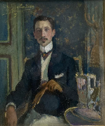 Portrait d'Alain Jammes d'Ayzac dans son salon du Bois du Breuil, 1905.<br />